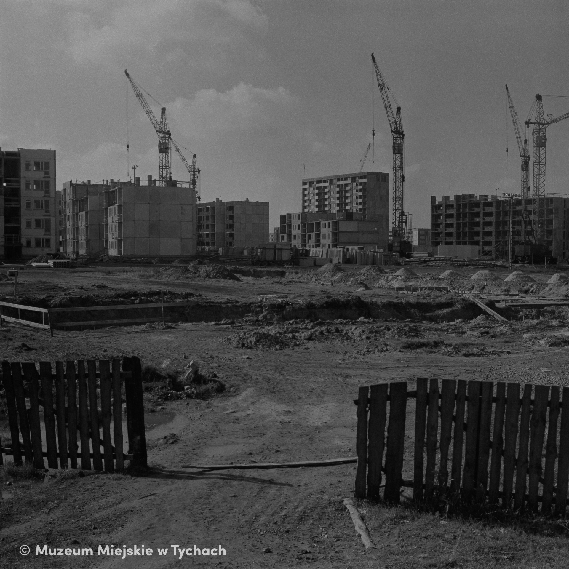 A construction site in the vicinity of the planned Honoraty Street, with residential buildings at various stages of completion visible in the distance. A view from the north.