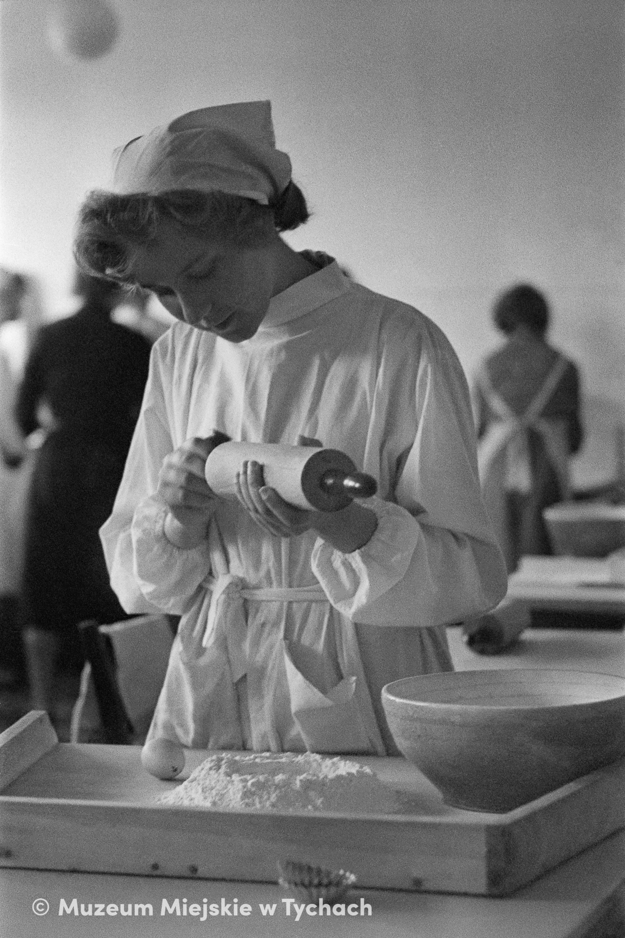 A student of the Vocational School of Home Economics at the Secondary School of Brewing Technology prepares to knead dough on a pastry board during a cooking and baking class.