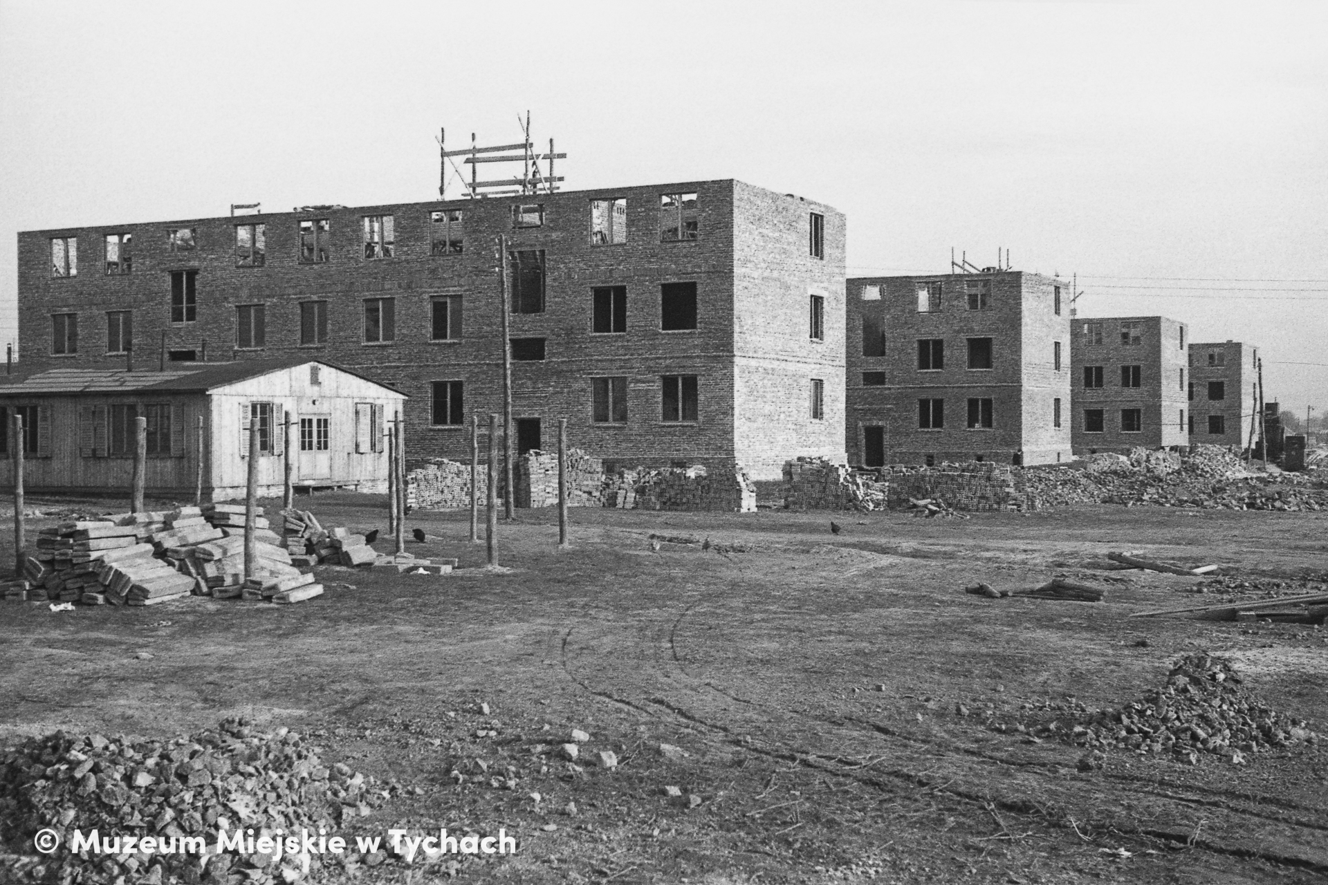 A northwest view of a construction site. A fragment of the access road leading to the housing estate. Pictured in the background are residential buildings under construction at Nos 13, 17, 21 and 23 in the proposed Wojska Polskiego Street.