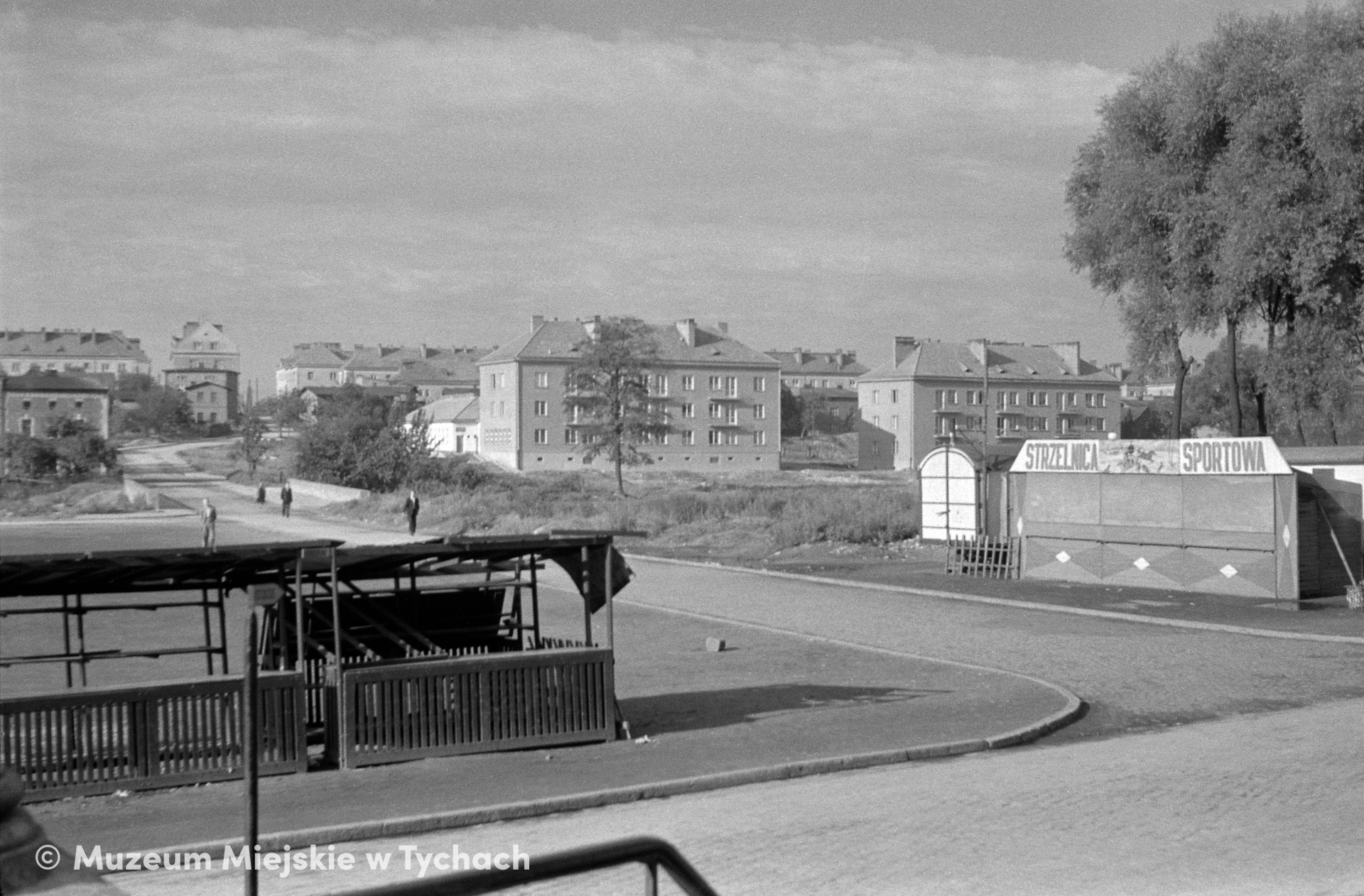 Residential blocks in Braterska Street and A-B Avenue. A view of Housing Estate B from the square in front of St. Mary Magdalene's Church (now Rynek [Market Square]). There is a shooting gallery next to the square.