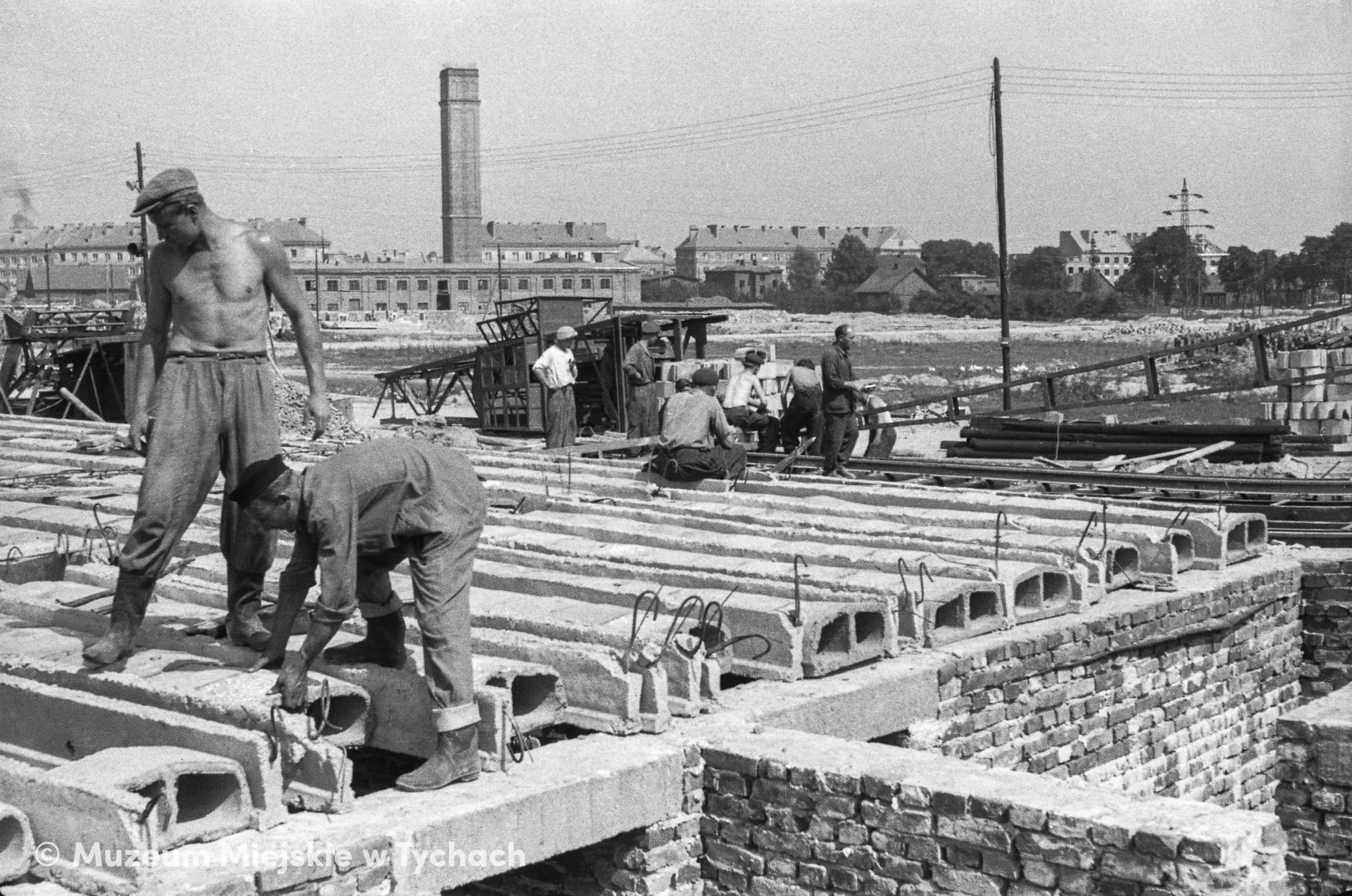 Installation of a ceiling made of Ackerman hollow bricks on one of the floors of a building erected in Bema street.
