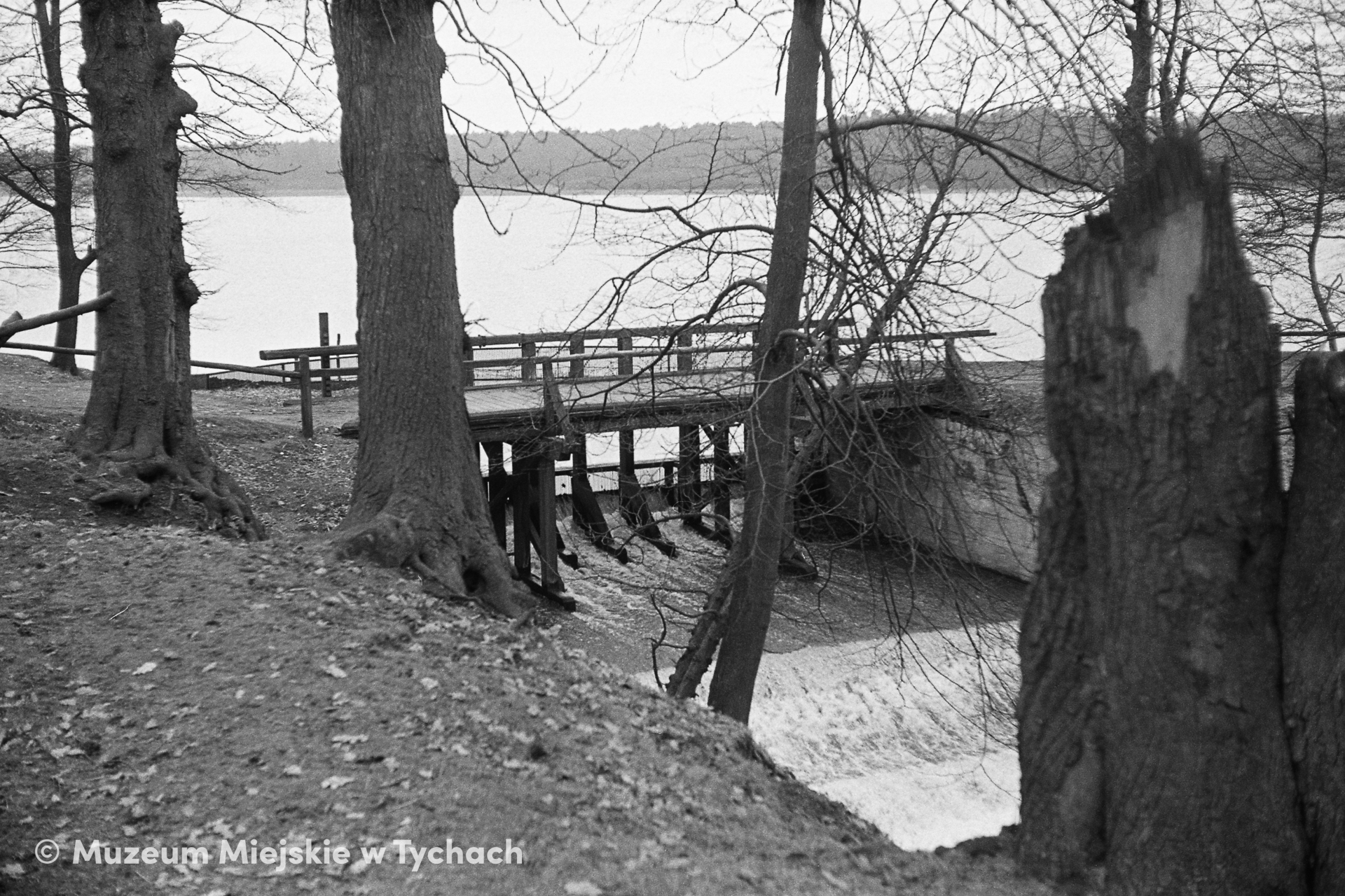 Lake Paprocańskie with a weir and an outflow canal to the Gostynka River.