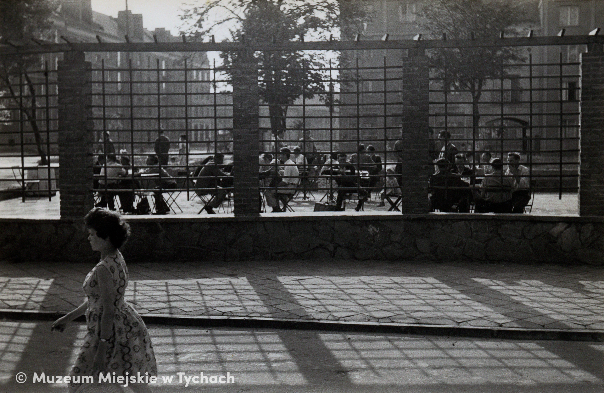 Tables in front of Słoneczna Restaurant, located in a residential block in Bielska Avenue.