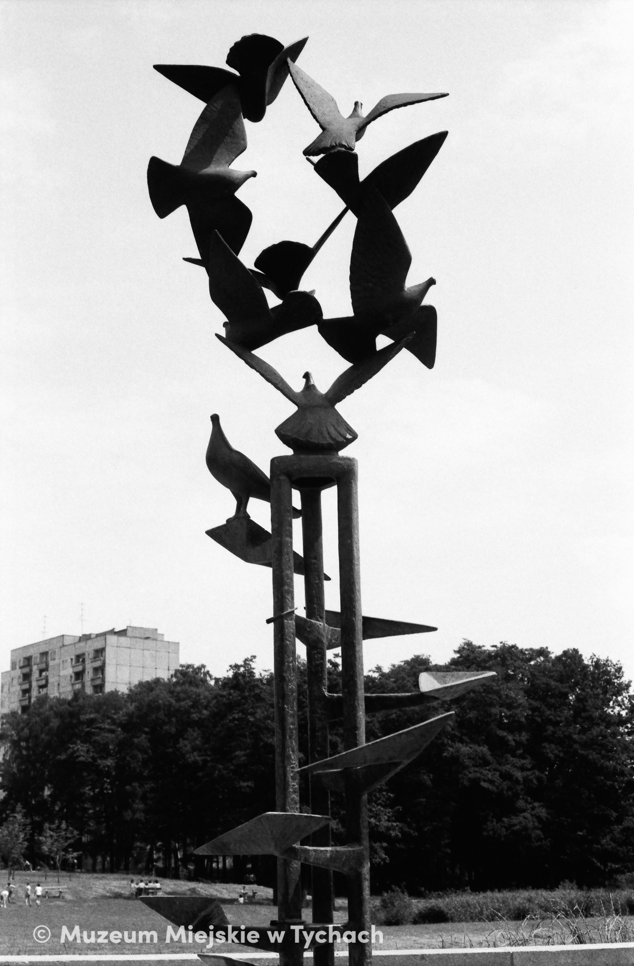 Kompozycja rzeźbiarska w postaci trzech słupków połączonych elementami geometrycznymi, na szczycie której znajduje się stado wzlatujących gołębi. Nieistniejąca dziś, odlana z brązu rzeźba była ustawiona w betonowej misie jako fontanna w Parku Przyjaźni. Był to dar mieszkańców partnerskiego miasta Halle-Neustadt w Niemieckiej Republice Demokratycznej, postawiony na terenie Parku w pobliżu ulicy Iwana Koniewa (obecnie Armii Krajowej) i nazwany Fontanną Pokoju.