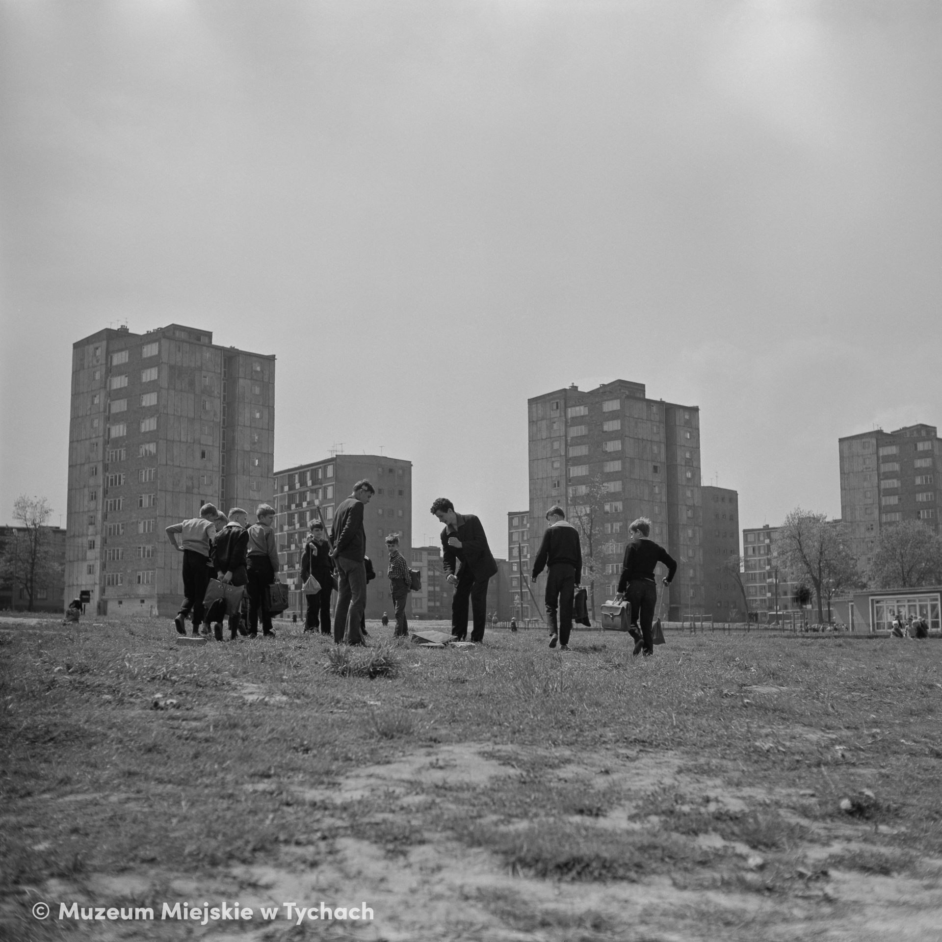 Uczniowie Szkoły Podstawowej nr 13 w drodze powrotnej do domu. W oddali bloki mieszkalne przy ulicy Dębowej (osiedle D1).