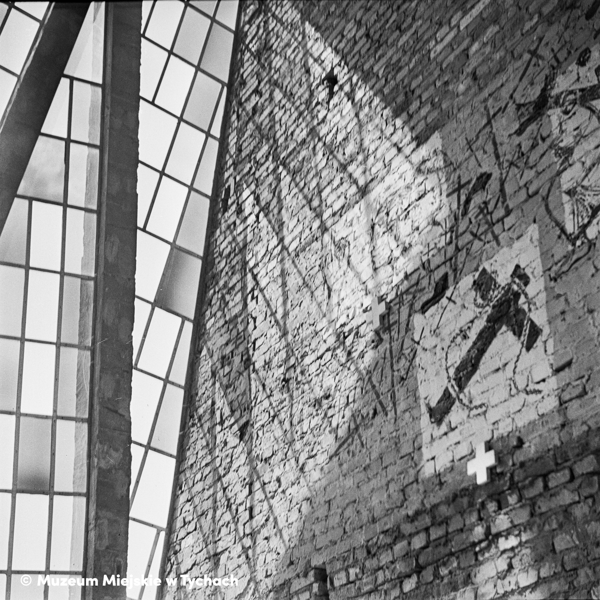 Ściana z barwnych szybek oraz ceglana, nieotynkowana ściana z fragmentem polichromii namalowanej przez Franciszka Wyleżucha (jedna ze stacji drogi krzyżowej) wewnątrz kościoła pw. św. Jana Chrzciciela. Te proste, nowoczesne kompozycje religijne stały się powodem skarg parafian do Kurii Diecezjalnej: drogę krzyżową usunięto około 1961 roku.