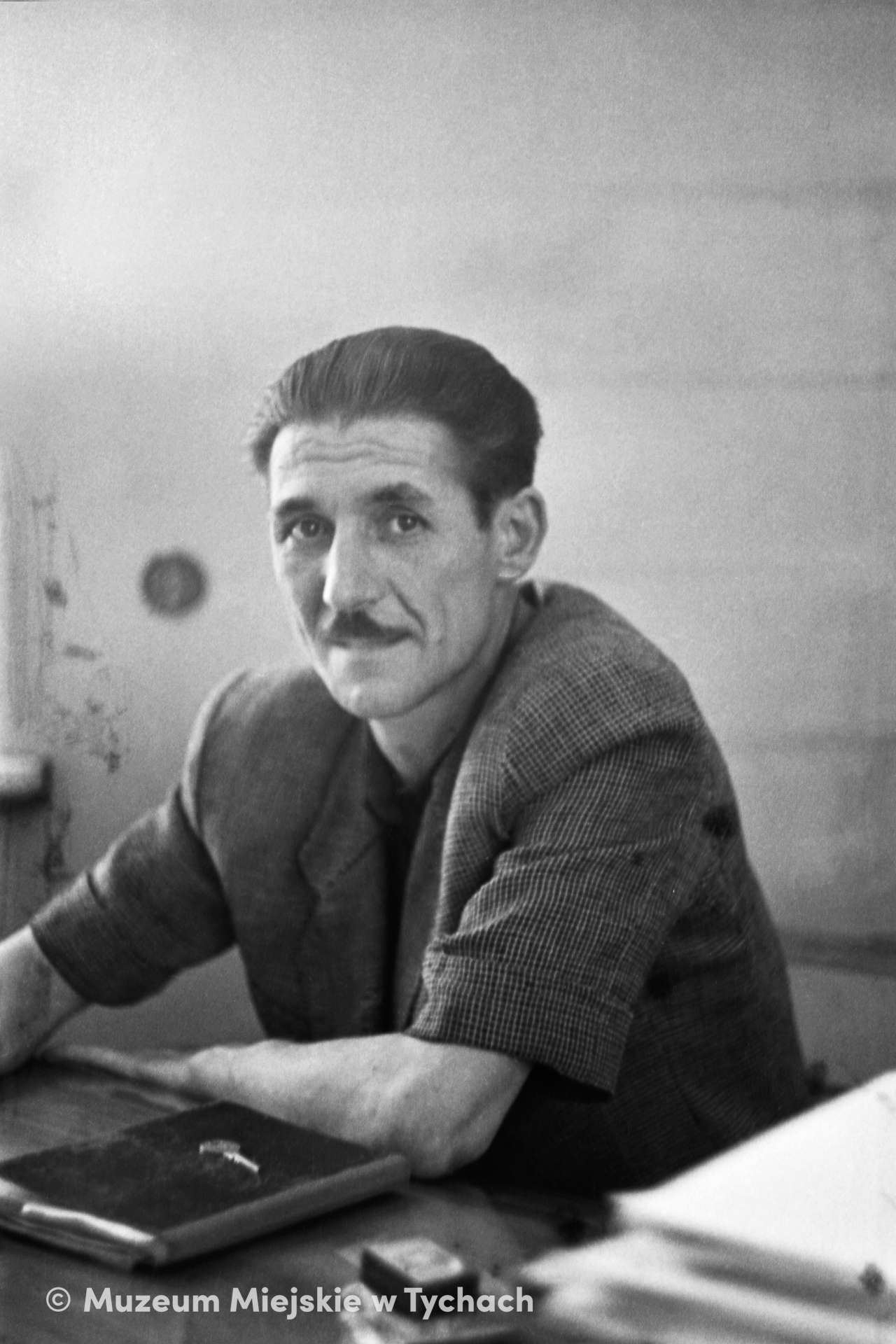 Pracownik przedsiębiorstwa budowlanego we wnętrzu biura.