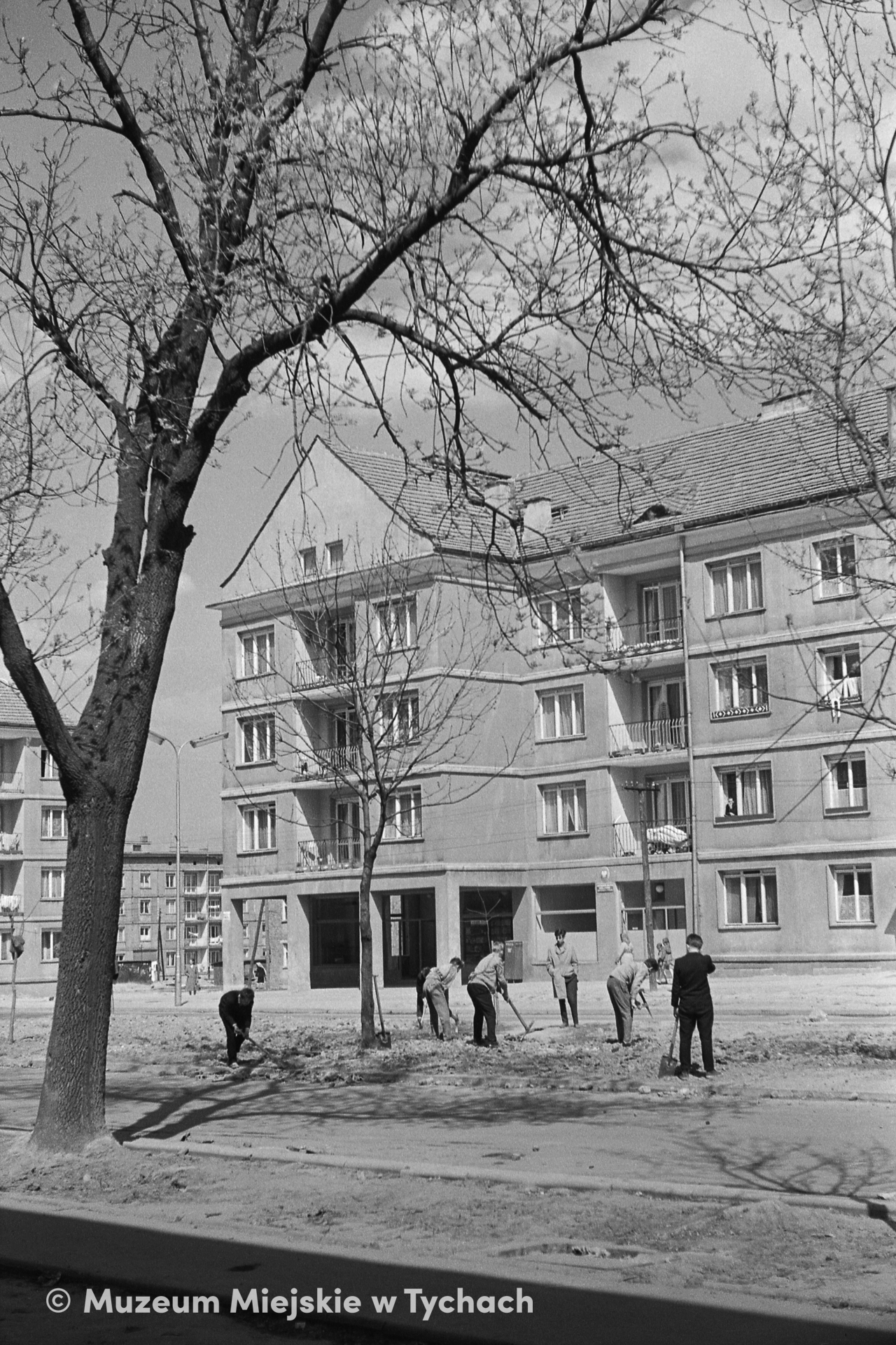 Czyn społeczny przy ulicy Paprocańskiej – kopanie i grabienie. Od 1968 do 1989 roku ulica nosiła nazwę alei Rewolucji Październikowej, dziś alei Niepodległości.