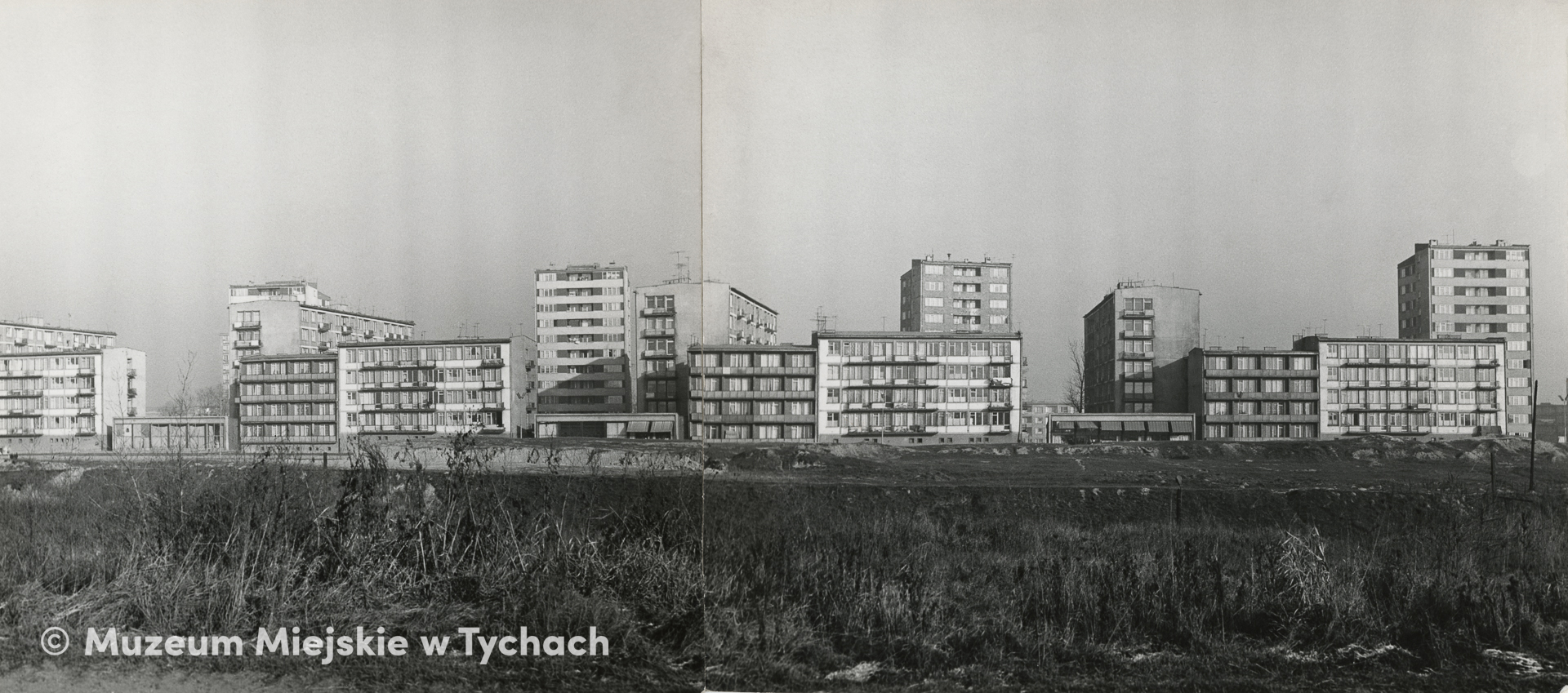Widok na osiedle D z południowej części miasta za wykopem kolejowym.
