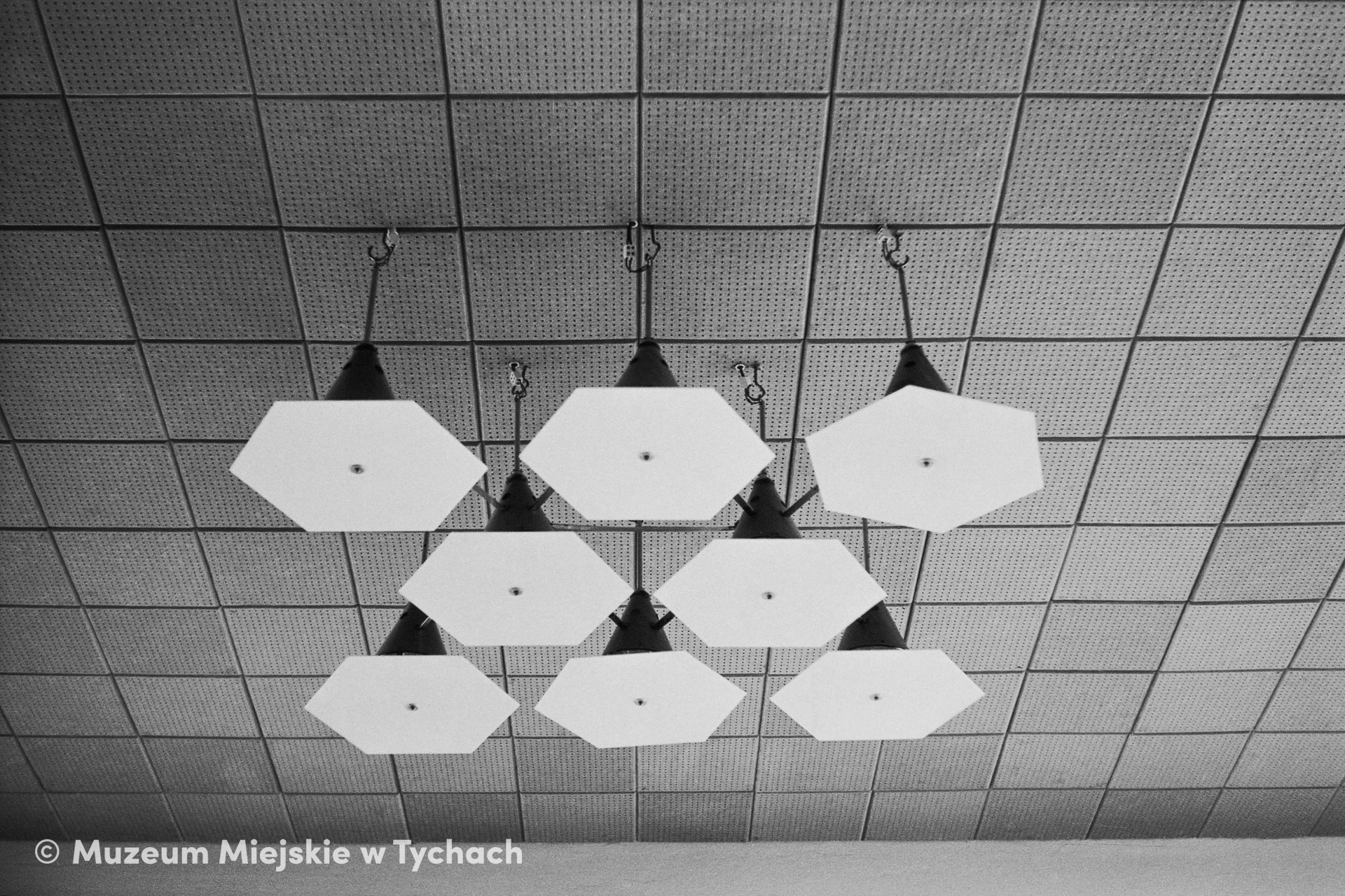 Lampy sufitowe w auli Technikum Budowlanego i Szkoły Rzemiosł Budowlanych (obecnie Zespół Szkół nr 5).