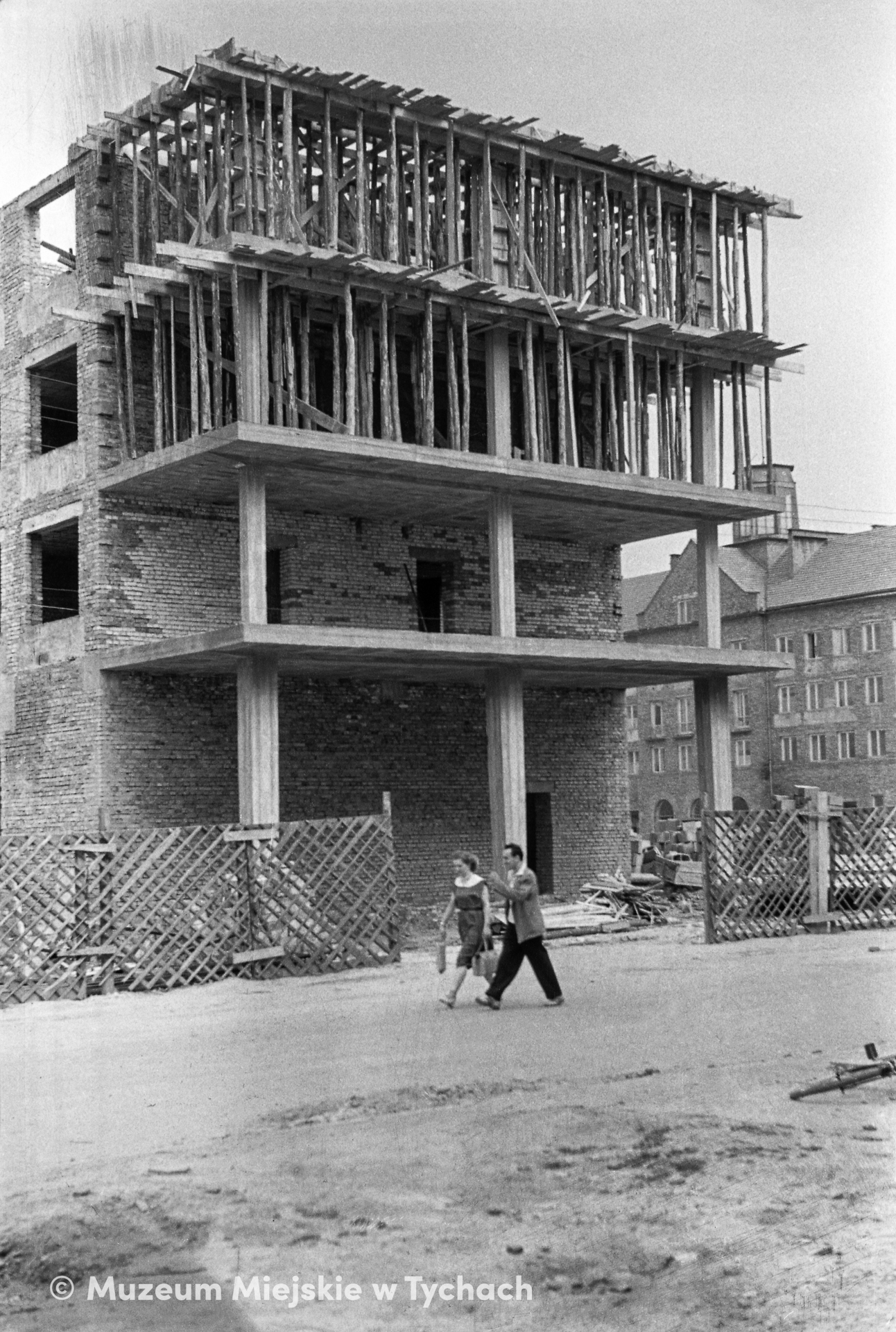 Budynek mieszkalny wznoszony przy placu Bolesława Bieruta (obecnie Krzysztofa Kamila Baczyńskiego). W budynku, od strony placu, znajdowało się wejście do kina Andromeda. Widok od ulicy Mariana Buczka (obecnie o. Innocentego Bocheńskiego).