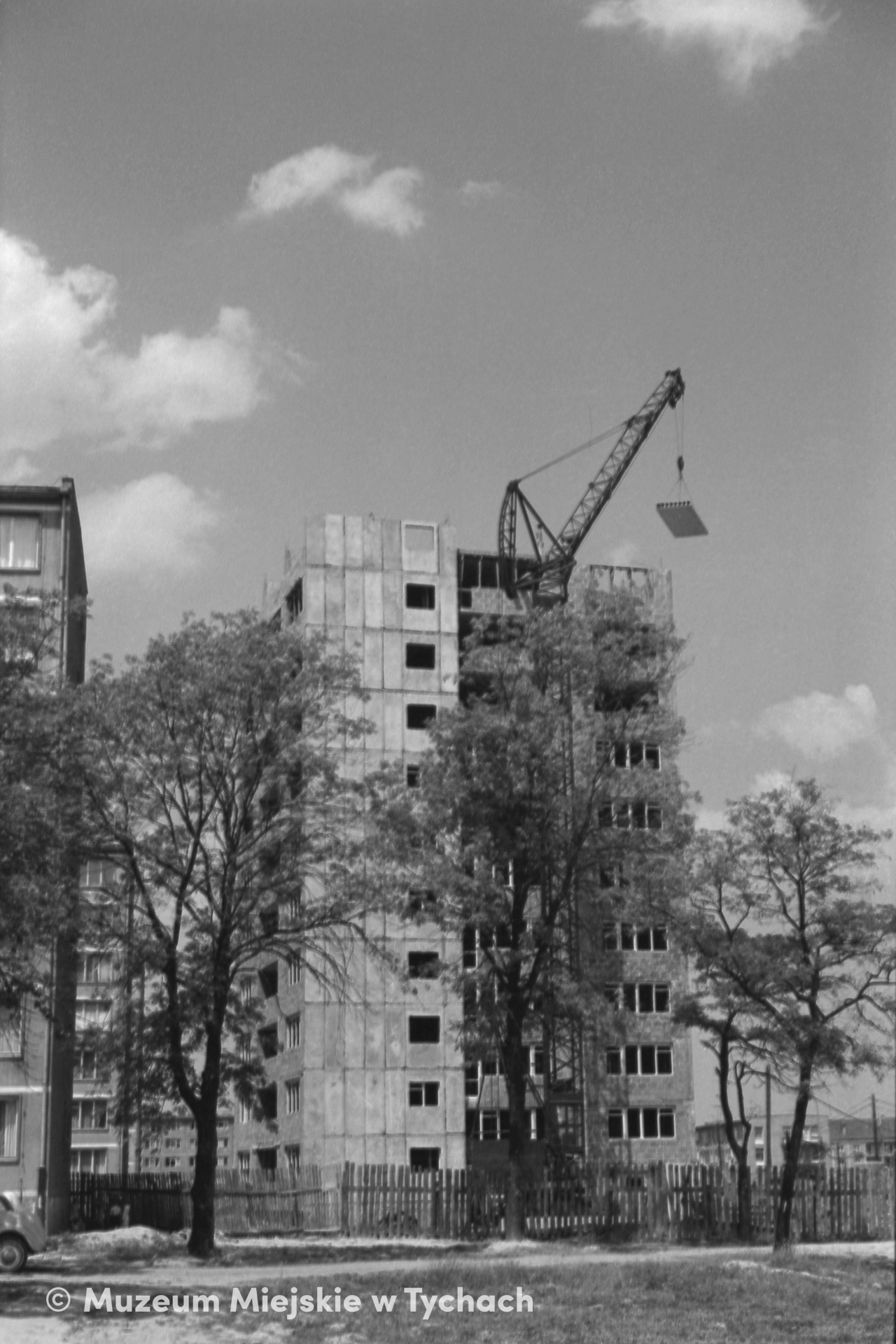The construction of one of the foursingle-staircase blocks in Dębowa Street near the former road to Paprocany.