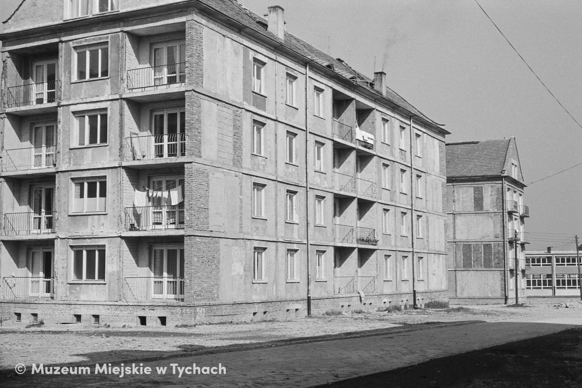 Three-storey residential blocks in Housing Estate E. Pictured on the right is a fragment of Primary School No. 12 in Elfów Street (currently School Complex No. 2).