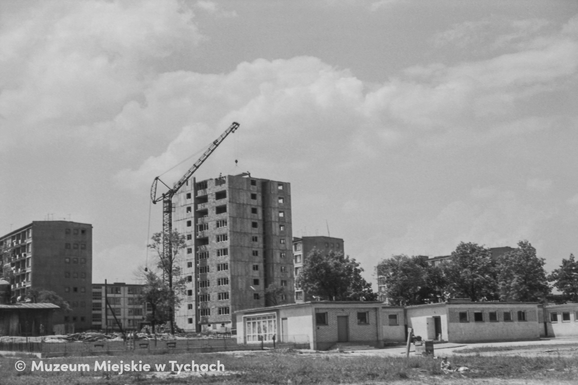 Widok od północnego zachodu na przedszkole pawilonowe przy ulicy Paprocańskiej (od 1968 roku aleja Rewolucji Październikowej, obecnie Niepodległości). W głębi punktowiec w budowie i budynki mieszkalne przy ulicy Dębowej. W budynku przedszkola obecnie mieści się Ośrodek Rehabilitacyjno-Edukacyjno-Wychowawczy Polskiego Stowarzyszenia na rzecz Osób z Niepełnosprawnością Intelektualną.