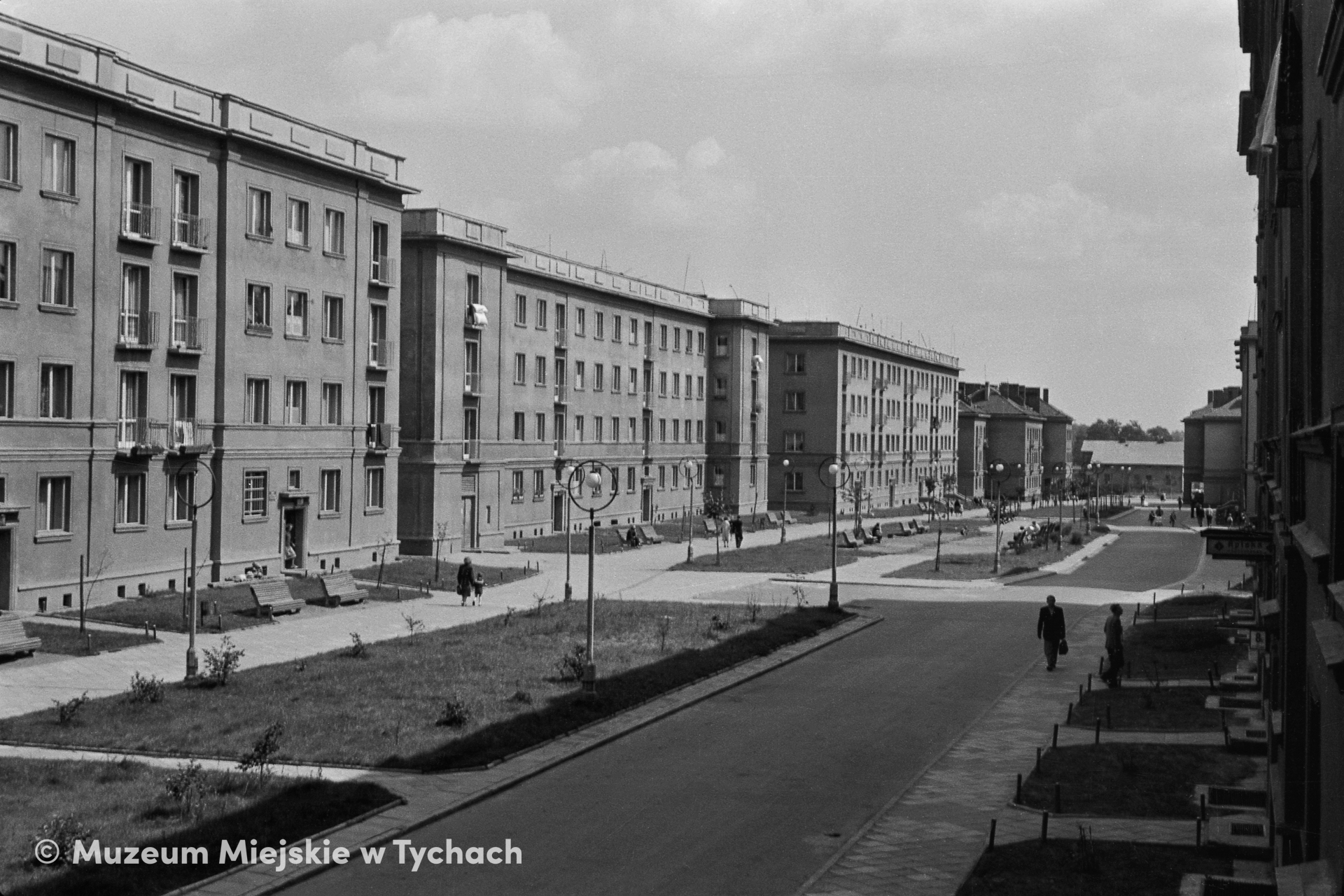Budynki mieszkalne pierzei północnej ulicy Wincentego Pstrowskiego (obecnie ulica Arkadowa). Widok w kierunku osiedla B.