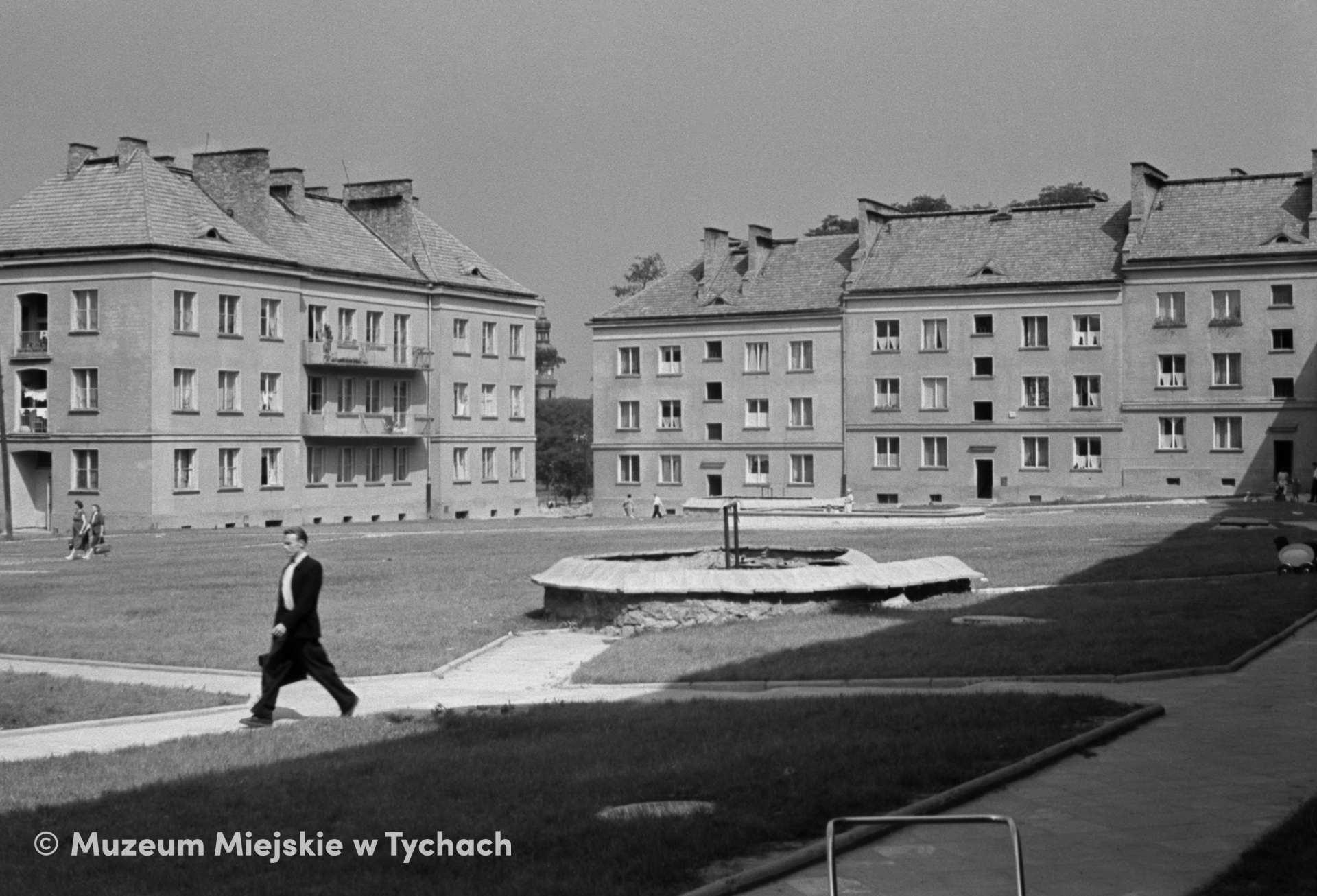 Podwórze między budynkami mieszkalnymi przy ulicy Brzozowej, w pobliżu ulicy Bohaterów Warszawy i obecnej ulicy Beethovena.
