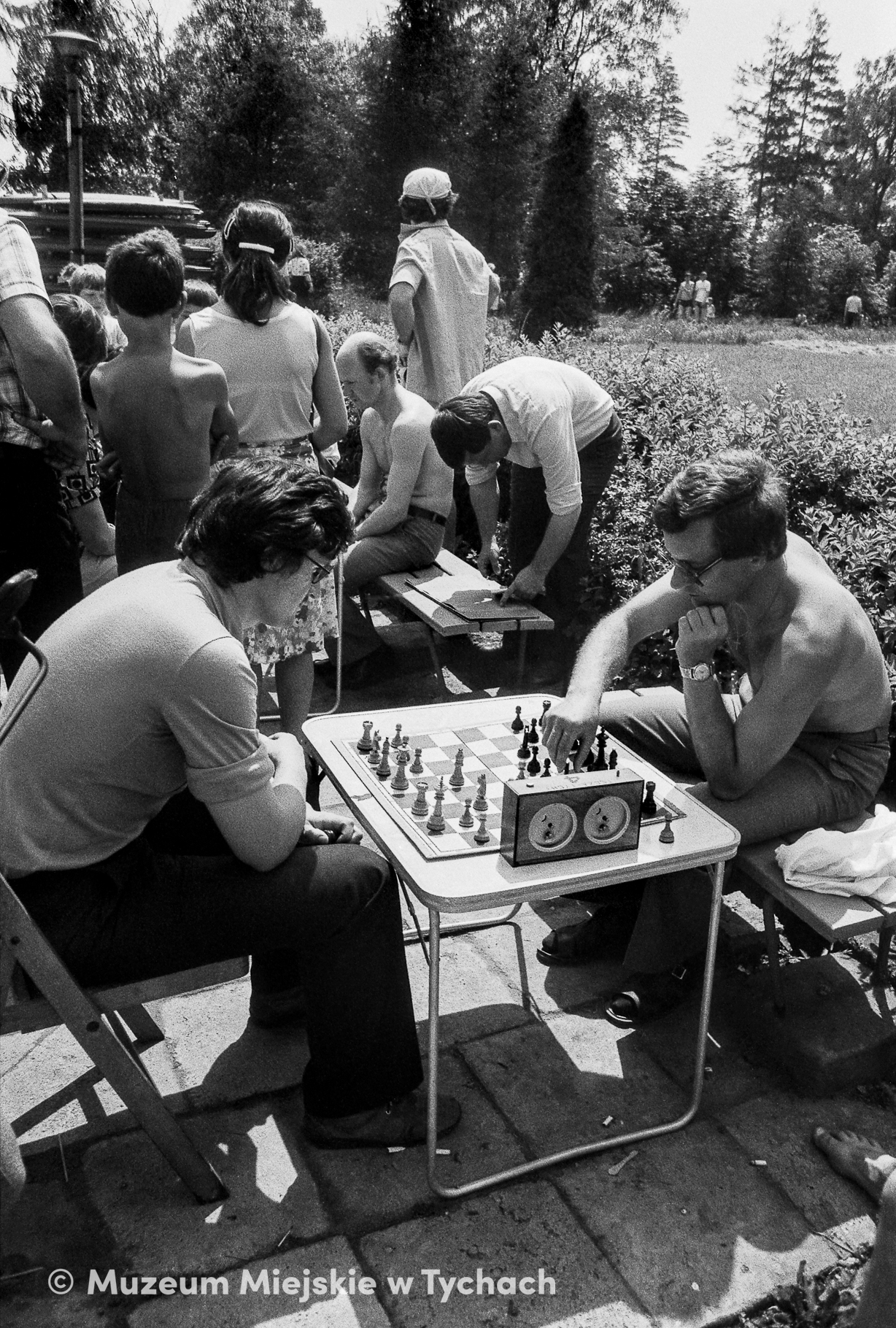Rozgrywki szachowe na terenie Ośrodka Wypoczynkowego w Paprocanach podczas Tyskich Spotkań Młodości. Towarzystwo Przyjaciół Ziemi Tyskiej organizowało TSM od 1964 roku – w ramach wydarzenia odbywały się koncerty, wystawy, spotkania ze znanymi osobami i zawody sportowe, a głównymi ulicami miasta maszerował barwny korowód młodzieży.
